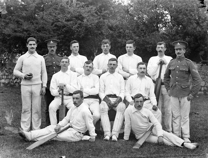 Keywords: men group portrait team outdoors thirteen paddle cricket bat uniform 1909 ball saturday 22nd may 1900s 20th century 20thcentury barracks cricket team cricketteam ireland leinster a.h. poole ahpoole poole collection poolecollection arthur henri poole arthurhenripoole glass negative glassnegative royal artillery royalartillery waterford national library of ireland nationallibraryofireland blackandwhite monochrome outdoor groupshot people team sport sport black and white Cricket Team at Barracks, (almost certainly) Waterford. Date: Saturday, 22 May 1909 NLI Ref.: P_WP_1924 Cricket Team at Barracks, (almost certainly) Waterford. Date: Saturday, 22 May 1909 NLI Ref.: P_WP_1924 |