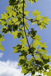 Keywords: may light and shadow maple tree road branches leaves maple leaves sky shine through juicy spring