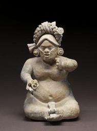 | Keywords: Mayan - Dwarf Figurine - Walters 20092036.jpg Dwarfs were important members of royal Maya courts They are portrayed serving food playing musical instruments holding sacred objects for the ruler and as diviners and scribes Their elevated social roles were steeped in cosmology and religious mythology especially that of the maize god who was assisted by a dwarf when the deity set the Three Stones of the cosmic hearth at the beginning of Creation The Classic Maya viewed dwarfs as the living embodiment of the maize god's supernatural helpers who continued their sacred duty in the regal court Maya peoples today believe that earlier creations were populated by a race of dwarfs who now reside inside the earth living below the ruins of the ancient cities The ornate turban worn by this dwarf is typical of the courtly garb of key individuals serving the ruler This so-called spangled turban headdress is especially connected to gods and humans associated with Creation and scribal duties A curious feature of this dwarf is what may be a halved cacao pod held in his right hand His cheeks are covered with what appears to be a thin woven fabric; this recalls other figurines many of which are dwarfs with an unidentifiable material plastered to the lower half of their face These features suggest the depiction of a formal rite The graceful rendering of this figure and the exceptional attention to detail reveal the work of a master artist AD 550-850 Late Classic earthenware post-fire paint cm 20 32 12 7 15 88 accession number 2009 20 36 80191 J Guy Puerto date and mode of acquisition unknown John G Bourne 1960s by purchase Walters Art Museum Gift of John Bourne 2009 place of origin Campeche Mexico Walters Art Museum license Maya art in the Walters Art Museum Maya ceramic figurines Media contributed by the Walters Art Museum needs category review |