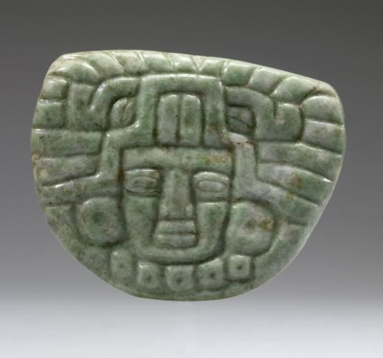 | Keywords: Mayan - Face Pendant - Walters 2009208 - View A.jpg Jadeite is a dense alumina silicate of the pyroxene mineral family The preferred stone for denoting status and sacredness throughout Mesoamerica its value was based on its relative scarcity the polished stone's bright shiny surface its translucent colors ranging from light green to a rich blue-green and the challenge of carving the stone due to the stone's hardness In addition to the impressive visual qualities and scarcity jadeite was symbolically linked to the miracle of the earth's fecundity the maize god and the life-giving promise of green plants and blue-green water Together these attributes made jadeite the most valuable of all materials to adorn the nobility and the gods The Maya also fashioned adornments from similar green-colored stones whose visual properties resemble those of jadeite It is difficult to discern the correct geological identification of these adornments without technical analyses This pendant exemplifies the aesthetic variety and technical expertise of Late Classic Maya jadeite carvers The pendant is carved in the standardized frontal rendering of a noble person wearing the formal head gear of the ruling elite with unique features that document more than five hundred years of the jadeite carver's art The flat pendants exemplify Middle and Late Classic figural pendant styles with the distinctive headdresses and impressive jadeite earflares and bead necklaces worn by the nobility AD 650-850 Late Classic jadeite albite cm 9 3 11 8 1 8 accession number 2009 20 8 80163 Throckmorton Fine Arts New York date and mode of acquisition unknown John G Bourne 1990s by purchase Walters Art Museum Gift of John Bourne 2009 place of origin Honduras Walters Art Museum license Maya art in the Walters Art Museum Media contributed by the Walters Art Museum needs category review Maya jade beads and pendants |