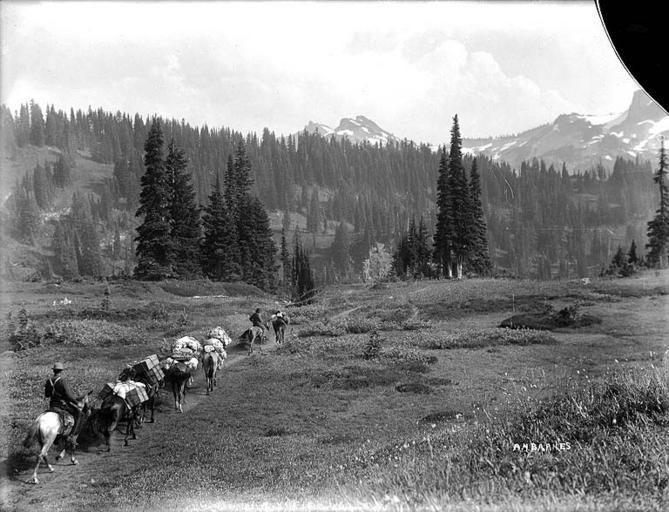 Keywords: Mazama party on horseback, Paradise Park, Mount Rainier National Park, Washington, ca 1918 (BAR 228).jpeg check categories 26 September 2015 2 Photograph Creator Albert Henry Barnes On sleeve of negative Mt Tacoma Mazama pack train in Paradise Park Subjects LCTGM Packtrains--Washington State --Paradise Park; Horses--Washington State --Paradise Park Subjects LCSH Paradise Park Wash ; Mount Rainier National Park Wash depicted place United States--Washington State -Paradise Park ca 1918 Silver gelatin b/w Institution University of Washington UWASH-AHBarnes-source accession number 228 PD-old-auto-1923 1920 Information field Order Number BAR296 Images from the Albert Henry Barnes Collection to check Horses Horseback on Mount Rainier