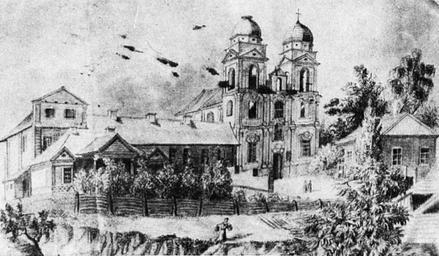Keywords: Mazyr, Zamkavaja. Мазыр, Замкавая (XIX).jpg азы Mazyr вуліца Замкавая vulica Zamkavaja Ба окавы касьцёл і кляшта бэ на дынаў збудаваны з фундацыі палкоўніка Стэфана Лошкі Ад 1865 і да сёньня ца ква Сьвятога іхала А ханёла аскоўскага пат ыя хату http //wouk livejournal com www wouk livejournal com author century 19 PD-old-100 Church of Saint Michael Archangel in Mazyr History of Mazyr |