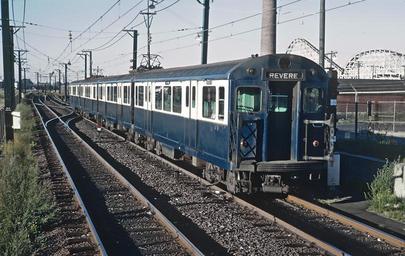 <b>A Roger Puta Photograph</b> Train reversing at Wonderland, September 1956.jpg A train of 1951 St Louis East Boston cars reverses direction just past Wonderland in September 1965 https //www flickr com/photos/129679309 N05/26083138264/ MBTA Revere Extension Elevated pulling out of Wonderland Station to reverse and head south again Revere MA on September 4 1965 1965-09-04 Roger Puta RogerPuta St Louis Car Company Type 3 East Boston cars MBTA in 1965 Photographs taken on 1965-09-04 Flickr images uploaded by User Pi 1415926535 |
