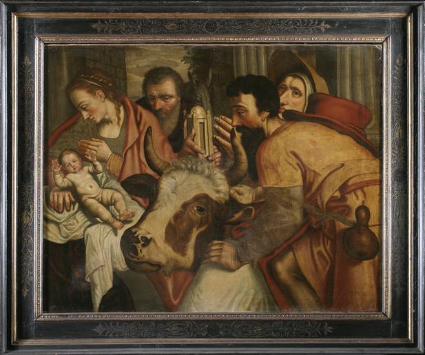 | Keywords: MCC-20934 Aanbidding der herders (1).tif Artwork nl Pieter Aertsen nl Aanbidding der herders Naar Pieter Aertsen tweede helft 16e eeuw Museum Catharijneconvent BMH s560 Vanaf de Middeleeuwen horen de os en de ezel bij het kerstverhaal Ze verwijzen naar de profeet Jesaja die hun aanwezigheid bij het kind in de kribbe al had voorspeld Terwijl de ezel op de achtergrond staat speelt de os hier een hoofdrol Geen wonder de inwoners van de Lage Landen zijn heel trots op hun runderen Die worden op de vette klei geweid om daarna met veel winst te worden verkocht Dergelijke vetgemeste ossen soms wel drieduizend pond zwaar geeft men ook als cadeau aan hoogwaardigheidsbekleders De later zo gehate hertog van Alva ontvangt in 1568 twee van zulke ossen als geschenk between 1550 1599 nl olieverf doek nl Hoogte 91 0cm Breedte 115 0cm Max hoogte 118 0cm Max breedte 141 5cm Max diepte 8 0cm Institution Museum Catharijneconvent object history exhibition history credit line nl Foto Museum Catharijneconvent Utrecht foto Ruben de Heer accession number Object number 20934 Inventory number BMH s00560 place of creation https //www catharijneconvent nl/adlib/20934/ View this work on the website of Museum Catharijneconvent Museum Catharijneconvent Cc-zero <gallery> File MCC-20934_Aanbidding_der_herders_ 1 tif </gallery> Pieter Aertsen paintings in the Museum Catharijneconvent |