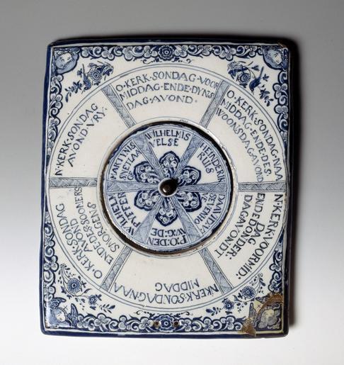 Keywords: MCC-38685 Delftsblauw predikantenbord met namen van Delftse predikanten en de namen van kerken, met draaischijf (1).tif Artwork nl Anonymous Delft nl Twee predikantenborden uit Delft en Rotterdam Delft 1736 en 18e eeuw StCC v16 en RMCC v17 Bruikleen Rijksmuseum Amsterdam Stadspredikanten van de officiƫle gereformeerde kerk preken in de zeventiende en achttiende eeuw niet in een vast kerkgebouw in hun stad Volgens een rouleersysteem krijgen zij voor de diensten elke zondag een ander kerkgebouw toegewezen Het ene bord toont het rooster van predikanten te Rotterdam Door de wijzer van het bord te draaien kunnen predikanten bepalen waar zij de volgende keer moeten preken of catechiseren Het andere bord geeft de preekbeurten aan in de Oude en Nieuwe Kerk te Delft 1736 nl aardewerk Size 20 5 24 5 cm nl Hoogte 20 5cm Breedte 24 5cm Institution Museum Catharijneconvent object history exhibition history credit line nl Foto Museum Catharijneconvent Utrecht foto Ruben de Heer accession number Object number 38685 Inventory number StCC v00016 place of creation https //www catharijneconvent nl/adlib/38685/ View this work on the website of Museum Catharijneconvent Museum Catharijneconvent Cc-zero <gallery> File MCC-38685_Delftsblauw_predikantenbord_met_namen_van_Delftse_predikanten_en_de_namen_van_kerken _met_draaischijf_ 1 tif </gallery> |