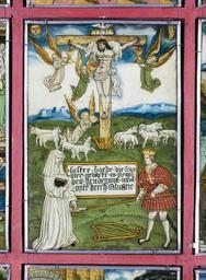 Keywords: MCC-42054 Veelluik met het martelaarschap van de H. Theodosia (16).jpg Artwork nl Anonymous Gelre nl Middenstuk 1 Theodosia verzoekt toelating tot de gevangenis Rechtsboven een engel met banderol waarop de tekst Ghi sijt verhoert die geve die ghi do bidt heb ick gevestigt mit mijnen gelt die martelie te liden 2 Theodosia wordt bij de magistraat ter verantwoording geroepen Op het tekstbord Desen s alch sal ick mitter hulpen des heren voer s en 3 Theodosia ™s marteling aan de hefboom Op het tekstbord Ic ben bereyd dinc voer iezus christo te liden 4a Theodosia aan de schandpaal 4b Theodosia ™s ledematen worden uitgerekt 5 Allegorische voorstelling Christus aan het kruis met het offerlam op zijn schouders; onder het kruis negen schapen Op de voorgrond links een non rechts koning David met een gouden kroon op zijn hoofd en een herdersstaf met schep in beide handen die hij naar de non uitsteekt; tussen hen in ligt een harp Op het tekstbord suster hoede die scapen dier gedacten in die minne des brudegoms iesus opten berch caluarie 6a Theodosia uit het water gered door twee engelen 6b Vijf nonnen en een vrouw in wereldse kledij bezoeken Theodosia in de gevangenis Op het tekstbord min medes elen in cro Christo den enge w ech Het opschrift op de lijst onder de voorstelling is onleesbaar 7 Theodosia voor de wilde dieren geworpen Op het tekstbord nu suldi bekennen hoe vol si vermogen die god mit pueren herten minnen 8 Onthoofding van Theodosia Op het tekstbord dat ic inren tiit des vreden heb vercregen dat sal ic inden striit nie verliesen 9a Verschijning van Theodosia aan haar ouders Op het tekstbord sieh hoe soet die glorie ist daer du mi af beroeven wolste 9b Begrafenis van Theodosia Een zwevende engel met banderol waarop si heft nu salighe vrocht Aan weerszijden van deze taferelen zijn vrouwelijke heiligen afgebeeld steeds twee aan twee met tussen hen in een geknielde non Op de eerste voorstelling links in plaats van een vrouwelijke heilige Maria met kind Links 10a Madonna op de maansikkel en Fides Opschriften / fides 10b Caritas en Spes Opschriften niet leesbaar 11a Agatha en Dorothea Opschriften aghata / doratea 11b Apollonia met attribuut van Agatha tang waarin in plaats van een tand een borst is geklemd en Euphrosia Opschriften appolonia / effrosia 12a Anatolia en Christina Opschriften anatolia / 12b Victoria en Sophia Opschriften victoria / sophia Rechts 13a Margaretha en Gertrudis Opschriften a gretha / gertrudis 13b Ursula en Walburga Opschriften ursula / 14a Catharina en Barbara Opschriften katrina / barbara 14b Agnes en Prisca Opschriften agneta / priska 15a Cecilia en Cunera Opschriften cecilia / cunera 15b Lucia en Clara Opschriften lucia / clara Binnenzijde linkerluiken 16 Kruisdraging met Veronica en Simon van Cyrene 17 Doornenkroning Rechts een als priester geklede heilige met een kelk in de hand en een knielende non 18 Geseling Rechts een H Bisschop 19 Christus in de Hof van Olijven en de stigmatisatie van de Franciscus 20 Besnijdenis Rechts een reguliere kanunnik en een geknielde vrouw in 16de-eeuwse kledij met de attributen van de H Goedele een lantaarn geflankeerd door een engel met een brandende kaars en een duivel met een blaasbalg; daaronder het opschrift gudila 21 Ontkleding van Christus Rechts een heilige met een boek en een ladder 22 Kruisnageling Rechts de apostel Thomas 23 Christus aan het kruis met Maria Johannes en de drie vrouwen Rechts Antonius 24 Bewening Rechts de apostel Paulus en twee geknielde nonnen 25 Christus treedt de wijnpers Links Augustinus rechts een reguliere kanunnik Binnenzijde rechterluiken 26 Aanbidding der koningen 27 Geboorte van Christus Opschrift gloria in excelsis 28a Visitatie 28b Vier nonnen knielend voor een altaar waarop een drieluik met de Kruisiging Achter hen een priester Boven diens hoofd h ia Rechts daarvan een banderol met eenregelige tekst van een lied adv i g i I Fi Filius dn domini 29 Annunciatie Opschrift ave gratia plena 30 Genadestoel Rechtsonder op de voorgrond knielt een non Op het tekstbord god die alle creatueren gescapen heft en ons mit sin dierbaren bloet verlost heft hi wil ock sin gracie geuen ge eit v an der oude naam van de stichtster-non 31 Christus verschijnt aan Maria 32 Hemelvaart van Christus 33 Kroning van Maria 34 Allegorische voorstelling God de Vader gezeten op een troon met op de trappen die naar de troon voeren links de vijf wijze rechts de vijf dwaze maagden; in het midden een engel boven de hellemond met drie verdoemden Op de banderol in de linkerhand van de engel Gae t of Myt ghi vermadi vermaledijden ; op de banderol in zijn rechterhand coemt ghi gebenedide Op het tekstbord bij de wijze maagden gaet tot der gene daer se te coop is Op het tekstbord bij de dwaze maagden geft ons den olie vor ons lamp Op de banderol aan de onderzijde van de voorstelling rick der hemelen sal worden all fiere maechden Buitenzijde linkerluiken Nr 35 36 en 40 t/m 44 zijn gewijd aan de zeven vallen van Christus De voorstellingen zijn zeer verwant aan zeven houtsneden met dit thema gedrukt op één blad getiteld ˜O mensch betracht dy siben vell Christi und dy siben herzenlaydt Marie ™ Wenen Albertina inv nr 1930-70 Zuid-Duitsland ca 1480; zie Marrow 1979 p 82 89 100 106 131 170 pl VIII 35 Christus ™ val voor de kruisnageling zesde val 36 Kruisoprichting zevende val 37 Allegorische voorstelling Christus als Man van Smarten en gebonden aan de geselpaal houdt een rood koord vast dat verbonden is met een knielende non Tekstrol Christus o dochter vollighet my want ic gepassijt bin voor di wilt mij u hert geven om ewich te leuen Tekstrol non here ic offer u myn hert nu ende inder ewicheit Achter de non zeven kleinere opschriften verwijzend naar zeven deugden elk voorafgegaan door een hand met een geselroede waarvan de eerste en de derde onleesbaar zijn 2 die mel it mildheid ; 4 gehoorsamheijt; 5 wakinge; 6 silencia ; 7 arheyt waarheid 38 Allegorische voorstelling In een ommuurde tuin slaat Christus met een hamer op 
