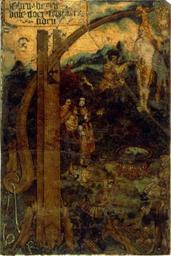 | Keywords: MCC-42054 Veelluik met het martelaarschap van de H. Theodosia (11).jpg Artwork nl Anonymous Gelre nl Middenstuk 1 Theodosia verzoekt toelating tot de gevangenis Rechtsboven een engel met banderol waarop de tekst Ghi sijt verhoert die geve die ghi do bidt heb ick gevestigt mit mijnen gelt die martelie te liden 2 Theodosia wordt bij de magistraat ter verantwoording geroepen Op het tekstbord Desen s alch sal ick mitter hulpen des heren voer s en 3 Theodosia ™s marteling aan de hefboom Op het tekstbord Ic ben bereyd dinc voer iezus christo te liden 4a Theodosia aan de schandpaal 4b Theodosia ™s ledematen worden uitgerekt 5 Allegorische voorstelling Christus aan het kruis met het offerlam op zijn schouders; onder het kruis negen schapen Op de voorgrond links een non rechts koning David met een gouden kroon op zijn hoofd en een herdersstaf met schep in beide handen die hij naar de non uitsteekt; tussen hen in ligt een harp Op het tekstbord suster hoede die scapen dier gedacten in die minne des brudegoms iesus opten berch caluarie 6a Theodosia uit het water gered door twee engelen 6b Vijf nonnen en een vrouw in wereldse kledij bezoeken Theodosia in de gevangenis Op het tekstbord min medes elen in cro Christo den enge w ech Het opschrift op de lijst onder de voorstelling is onleesbaar 7 Theodosia voor de wilde dieren geworpen Op het tekstbord nu suldi bekennen hoe vol si vermogen die god mit pueren herten minnen 8 Onthoofding van Theodosia Op het tekstbord dat ic inren tiit des vreden heb vercregen dat sal ic inden striit nie verliesen 9a Verschijning van Theodosia aan haar ouders Op het tekstbord sieh hoe soet die glorie ist daer du mi af beroeven wolste 9b Begrafenis van Theodosia Een zwevende engel met banderol waarop si heft nu salighe vrocht Aan weerszijden van deze taferelen zijn vrouwelijke heiligen afgebeeld steeds twee aan twee met tussen hen in een geknielde non Op de eerste voorstelling links in plaats van een vrouwelijke heilige Maria met kind Links 10a Madonna op de maansikkel en Fides Opschriften / fides 10b Caritas en Spes Opschriften niet leesbaar 11a Agatha en Dorothea Opschriften aghata / doratea 11b Apollonia met attribuut van Agatha tang waarin in plaats van een tand een borst is geklemd en Euphrosia Opschriften appolonia / effrosia 12a Anatolia en Christina Opschriften anatolia / 12b Victoria en Sophia Opschriften victoria / sophia Rechts 13a Margaretha en Gertrudis Opschriften a gretha / gertrudis 13b Ursula en Walburga Opschriften ursula / 14a Catharina en Barbara Opschriften katrina / barbara 14b Agnes en Prisca Opschriften agneta / priska 15a Cecilia en Cunera Opschriften cecilia / cunera 15b Lucia en Clara Opschriften lucia / clara Binnenzijde linkerluiken 16 Kruisdraging met Veronica en Simon van Cyrene 17 Doornenkroning Rechts een als priester geklede heilige met een kelk in de hand en een knielende non 18 Geseling Rechts een H Bisschop 19 Christus in de Hof van Olijven en de stigmatisatie van de Franciscus 20 Besnijdenis Rechts een reguliere kanunnik en een geknielde vrouw in 16de-eeuwse kledij met de attributen van de H Goedele een lantaarn geflankeerd door een engel met een brandende kaars en een duivel met een blaasbalg; daaronder het opschrift gudila 21 Ontkleding van Christus Rechts een heilige met een boek en een ladder 22 Kruisnageling Rechts de apostel Thomas 23 Christus aan het kruis met Maria Johannes en de drie vrouwen Rechts Antonius 24 Bewening Rechts de apostel Paulus en twee geknielde nonnen 25 Christus treedt de wijnpers Links Augustinus rechts een reguliere kanunnik Binnenzijde rechterluiken 26 Aanbidding der koningen 27 Geboorte van Christus Opschrift gloria in excelsis 28a Visitatie 28b Vier nonnen knielend voor een altaar waarop een drieluik met de Kruisiging Achter hen een priester Boven diens hoofd h ia Rechts daarvan een banderol met eenregelige tekst van een lied adv i g i I Fi Filius dn domini 29 Annunciatie Opschrift ave gratia plena 30 Genadestoel Rechtsonder op de voorgrond knielt een non Op het tekstbord god die alle creatueren gescapen heft en ons mit sin dierbaren bloet verlost heft hi wil ock sin gracie geuen ge eit v an der oude naam van de stichtster-non 31 Christus verschijnt aan Maria 32 Hemelvaart van Christus 33 Kroning van Maria 34 Allegorische voorstelling God de Vader gezeten op een troon met op de trappen die naar de troon voeren links de vijf wijze rechts de vijf dwaze maagden; in het midden een engel boven de hellemond met drie verdoemden Op de banderol in de linkerhand van de engel Gae t of Myt ghi vermadi vermaledijden ; op de banderol in zijn rechterhand coemt ghi gebenedide Op het tekstbord bij de wijze maagden gaet tot der gene daer se te coop is Op het tekstbord bij de dwaze maagden geft ons den olie vor ons lamp Op de banderol aan de onderzijde van de voorstelling rick der hemelen sal worden all fiere maechden Buitenzijde linkerluiken Nr 35 36 en 40 t/m 44 zijn gewijd aan de zeven vallen van Christus De voorstellingen zijn zeer verwant aan zeven houtsneden met dit thema gedrukt op één blad getiteld ˜O mensch betracht dy siben vell Christi und dy siben herzenlaydt Marie ™ Wenen Albertina inv nr 1930-70 Zuid-Duitsland ca 1480; zie Marrow 1979 p 82 89 100 106 131 170 pl VIII 35 Christus ™ val voor de kruisnageling zesde val 36 Kruisoprichting zevende val 37 Allegorische voorstelling Christus als Man van Smarten en gebonden aan de geselpaal houdt een rood koord vast dat verbonden is met een knielende non Tekstrol Christus o dochter vollighet my want ic gepassijt bin voor di wilt mij u hert geven om ewich te leuen Tekstrol non here ic offer u myn hert nu ende inder ewicheit Achter de non zeven kleinere opschriften verwijzend naar zeven deugden elk voorafgegaan door een hand met een geselroede waarvan de eerste en de derde onleesbaar zijn 2 die mel it mildheid ; 4 gehoorsamheijt; 5 wakinge; 6 silencia ; 7 arheyt waarheid 38 Allegorische voorstelling In een ommuurde tuin slaat Christus met een hamer o