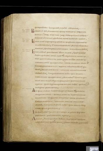 | Keywords: MCC-61050 Evangeliarium (Lebuïnuscodex) (193).jpg Artwork nl Anonymous Noordoost-Frankrijk Anonymous Rijnland Anonymous Maasland nl De kern van de boekband van de Lebuïnuscodex wordt gevormd door twee eikenhouten platten De rug en het achterplat zijn overtrokken met zeemleer Het voorplat is rijkelijk versierd met verguld zilversmeedwerk reliëfs van walrustand en verscheidene stenen De compositie van de bekleding van het voorplat wordt bepaald door een verguld zilveren filigraankruis Aan de uiteinden van de kruisarmen bevinden zich vierpassen met overhoeks vierkant eveneens met filigraan gedecoreerd Hiervan zijn er slechts twee bewaard gebleven en wel die aan de verticale kruisarmen Zij bevatten tevens nog de oorspronkelijke versiering bestaande uit een filigraanmedaillon met een pseudo-camee van respectievelijk een mannen- en een vrouwenhoofd in profiel Het snijpunt van het kruis wordt ingenomen door een ver vooruitstekend Bacchuskopje in chalcedoon te herkennen aan de kleine druiventrosjes in zijn haartooi Het kopje is gevat in een filigraanmedaillon welke op zijn beurt weer is geplaatst op een vierpas van filigraanwerk Op elk van de kruisarmen bevindt zich een ovale steen 'en cabochon' op een medaillon met filigraan Het filigraanwerk van kruis en sierstukken is in de vorm van visblazen In de ruimten tussen de kruisarmen zijn rechthoekige reliëfs van walrustand aangebracht met de vier evangelisten en hun symbool De reliëfs hebben de volgende afmetingen H 10 0 x B 5 5 cm Van links boven naar rechts onder betreft het Mattheus met de engel Johannes met de adelaar Marcus met de gevleugelde leeuw en Lucas met de gevleugelde os De figuren zijn paarsgewijs als elkaars spiegelbeeld ten opzichte van de middenas geplaatst Mattheus en Johannes zitten vrijwel geheel frontaal terwijl Marcus en Lucas meer in profiel zijn afgebeeld Qua opbouw verschillen de vier reliëfs nauwelijks van elkaar Binnen een rand van vierlobbige blaadjes verheffen zich twee zuilen met een basis een kapiteel en een dekplaat Hierop rust een rondboog geflankeerd door twee torens en afgedekt met een fronton dat boven Mattheus en Johannes boogvormig en boven Marcus en Lucas driehoekig is Onder deze overhuiving zitten de evangelisten gekleed in een lang gewaad en mantel met gekruiste benen aan een lessenaar hun blote voeten rustend op een bankje Allen zijn baardeloos en voorzien van een nimbus Voorts houden ze een pen in hun rechterhand terwijl hun linker op een boek ligt of gebarend is opgeheven Boven elk van de evangelisten verschijnt in de opening van het fronton zijn symbool met een spreukband Dit rijkelijk gedecoreerde middenveld wordt omlijst door sierbanden van verguld koper De opbouw van de sierlijsten is steeds dezelfde een opstaande smalle band die op regelmatige afstanden is voorzien van holten met aan weerszijden een brede strook voorzien van een gestanst motief Aan de lange zijden van de boekband bestaat het motief uit palmetten aan de korte zijden uit rozetten Van deze laatstgenoemde stroken ontbreekt steeds de buitenste rand Bij alle stroken met palmettenmotief wijzen de palmetten naar links met uitzondering van de buitenste strook rechtsboven die het motief in tegengestelde richting toont Verguld zilveren rozetten op de hoeken van het voorplat omgeven door een smalle rand van filigraanwerk met cirkelmotief en bekroond met een 'en cabochon' gezette steen completeren het geheel Van de rozet links onder ontbreekt de steen en is slechts de buitenste rand over Aan de voorzijde van de boekband bevinden zich nog de rudimenten van twee sluitingen between u'825' u'1000' u'1150' u'850' u'1199' u'1199' nl perkament eikenhout zilver goud koper walrustand chalcedoon glas leer Size 35 5 26 0 cm nl Hoogte 35 5cm Breedte 26 0cm Diepte 13 5cm Institution Museum Catharijneconvent object history exhibition history credit line nl Foto Museum Catharijneconvent Utrecht foto HetFotoAtelier Peter Rothengatter accession number Object number 61050 Inventory number ABM h1 place of creation https //www catharijneconvent nl/adlib/61050/ View this work on the website of Museum Catharijneconvent Museum Catharijneconvent Cc-zero <gallery> File MCC-61050_Evangeliarium_Lebuïnuscodex_ 11 jpg File MCC-61050_Evangeliarium_Lebuïnuscodex_ 172 jpg File MCC-61050_Evangeliarium_Lebuïnuscodex_ 212 jpg File MCC-61050_Evangeliarium_Lebuïnuscodex_ 61 jpg File MCC-61050_Evangeliarium_Lebuïnuscodex_ 12 jpg File MCC-61050_Evangeliarium_Lebuïnuscodex_ 213 jpg File MCC-61050_Evangeliarium_Lebuïnuscodex_ 56 jpg File MCC-61050_Evangeliarium_Lebuïnuscodex_ 232 jpg File MCC-61050_Evangeliarium_Lebuïnuscodex_ 93 jpg File MCC-61050_Evangeliarium_Lebuïnuscodex_ 99 jpg File MCC-61050_Evangeliarium_Lebuïnuscodex_ 184 jpg File MCC-61050_Evangeliarium_Lebuïnuscodex_ 64 jpg File MCC-61050_Evangeliarium_Lebuïnuscodex_ 299 jpg File MCC-61050_Evangeliarium_Lebuïnuscodex_ 86 jpg File MCC-61050_Evangeliarium_Lebuïnuscodex_ 260 jpg File MCC-61050_Evangeliarium_Lebuïnuscodex_ 159 jpg File MCC-61050_Evangeliarium_Lebuïnuscodex_ 247 jpg File MCC-61050_Evangeliarium_Lebuïnuscodex_ 180 jpg File MCC-61050_Evangeliarium_Lebuïnuscodex_ 121 jpg File MCC-61050_Evangeliarium_Lebuïnuscodex_ 315 jpg File MCC-61050_Evangeliarium_Lebuïnuscodex_ 284 jpg File MCC-61050_Evangeliarium_Lebuïnuscodex_ 33 jpg File MCC-61050_Evangeliarium_Lebuïnuscodex_ 44 jpg File MCC-61050_Evangeliarium_Lebuïnuscodex_ 258 jpg File MCC-61050_Evangeliarium_Lebuïnuscodex_ 237 jpg File MCC-61050_Evangeliarium_Lebuïnuscodex_ 20 jpg File MCC-61050_Evangeliarium_Lebuïnuscodex_ 220 jpg File MCC-61050_Evangeliarium_Lebuïnuscodex_ 279 jpg File MCC-61050_Evangeliarium_Lebuïnuscodex_ 183 jpg File MCC-61050_Evangeliarium_Lebuïnuscodex_ 60 jpg File MCC-61050_Evangeliarium_Lebuïnuscodex_ 166 jpg File MCC-61050_Evangeliarium_Lebuïnuscodex_ 97 jpg File MCC-61050_Evangeliarium_Lebuïnuscodex_ 71 jpg File MCC-61050_Evangeliarium_Lebuïnuscodex_ 132 jpg File MCC-61050_Evangeliarium_Lebuïn