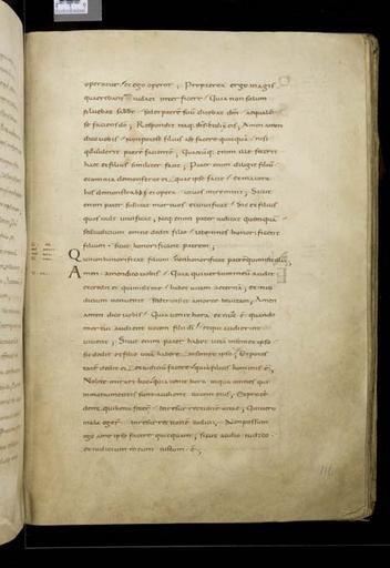 | Keywords: MCC-61050 Evangeliarium (Lebuïnuscodex) (237).jpg Artwork nl Anonymous Noordoost-Frankrijk Anonymous Rijnland Anonymous Maasland nl De kern van de boekband van de Lebuïnuscodex wordt gevormd door twee eikenhouten platten De rug en het achterplat zijn overtrokken met zeemleer Het voorplat is rijkelijk versierd met verguld zilversmeedwerk reliëfs van walrustand en verscheidene stenen De compositie van de bekleding van het voorplat wordt bepaald door een verguld zilveren filigraankruis Aan de uiteinden van de kruisarmen bevinden zich vierpassen met overhoeks vierkant eveneens met filigraan gedecoreerd Hiervan zijn er slechts twee bewaard gebleven en wel die aan de verticale kruisarmen Zij bevatten tevens nog de oorspronkelijke versiering bestaande uit een filigraanmedaillon met een pseudo-camee van respectievelijk een mannen- en een vrouwenhoofd in profiel Het snijpunt van het kruis wordt ingenomen door een ver vooruitstekend Bacchuskopje in chalcedoon te herkennen aan de kleine druiventrosjes in zijn haartooi Het kopje is gevat in een filigraanmedaillon welke op zijn beurt weer is geplaatst op een vierpas van filigraanwerk Op elk van de kruisarmen bevindt zich een ovale steen 'en cabochon' op een medaillon met filigraan Het filigraanwerk van kruis en sierstukken is in de vorm van visblazen In de ruimten tussen de kruisarmen zijn rechthoekige reliëfs van walrustand aangebracht met de vier evangelisten en hun symbool De reliëfs hebben de volgende afmetingen H 10 0 x B 5 5 cm Van links boven naar rechts onder betreft het Mattheus met de engel Johannes met de adelaar Marcus met de gevleugelde leeuw en Lucas met de gevleugelde os De figuren zijn paarsgewijs als elkaars spiegelbeeld ten opzichte van de middenas geplaatst Mattheus en Johannes zitten vrijwel geheel frontaal terwijl Marcus en Lucas meer in profiel zijn afgebeeld Qua opbouw verschillen de vier reliëfs nauwelijks van elkaar Binnen een rand van vierlobbige blaadjes verheffen zich twee zuilen met een basis een kapiteel en een dekplaat Hierop rust een rondboog geflankeerd door twee torens en afgedekt met een fronton dat boven Mattheus en Johannes boogvormig en boven Marcus en Lucas driehoekig is Onder deze overhuiving zitten de evangelisten gekleed in een lang gewaad en mantel met gekruiste benen aan een lessenaar hun blote voeten rustend op een bankje Allen zijn baardeloos en voorzien van een nimbus Voorts houden ze een pen in hun rechterhand terwijl hun linker op een boek ligt of gebarend is opgeheven Boven elk van de evangelisten verschijnt in de opening van het fronton zijn symbool met een spreukband Dit rijkelijk gedecoreerde middenveld wordt omlijst door sierbanden van verguld koper De opbouw van de sierlijsten is steeds dezelfde een opstaande smalle band die op regelmatige afstanden is voorzien van holten met aan weerszijden een brede strook voorzien van een gestanst motief Aan de lange zijden van de boekband bestaat het motief uit palmetten aan de korte zijden uit rozetten Van deze laatstgenoemde stroken ontbreekt steeds de buitenste rand Bij alle stroken met palmettenmotief wijzen de palmetten naar links met uitzondering van de buitenste strook rechtsboven die het motief in tegengestelde richting toont Verguld zilveren rozetten op de hoeken van het voorplat omgeven door een smalle rand van filigraanwerk met cirkelmotief en bekroond met een 'en cabochon' gezette steen completeren het geheel Van de rozet links onder ontbreekt de steen en is slechts de buitenste rand over Aan de voorzijde van de boekband bevinden zich nog de rudimenten van twee sluitingen between u'825' u'1000' u'1150' u'850' u'1199' u'1199' nl perkament eikenhout zilver goud koper walrustand chalcedoon glas leer Size 35 5 26 0 cm nl Hoogte 35 5cm Breedte 26 0cm Diepte 13 5cm Institution Museum Catharijneconvent object history exhibition history credit line nl Foto Museum Catharijneconvent Utrecht foto HetFotoAtelier Peter Rothengatter accession number Object number 61050 Inventory number ABM h1 place of creation https //www catharijneconvent nl/adlib/61050/ View this work on the website of Museum Catharijneconvent Museum Catharijneconvent Cc-zero <gallery> File MCC-61050_Evangeliarium_Lebuïnuscodex_ 11 jpg File MCC-61050_Evangeliarium_Lebuïnuscodex_ 172 jpg File MCC-61050_Evangeliarium_Lebuïnuscodex_ 212 jpg File MCC-61050_Evangeliarium_Lebuïnuscodex_ 61 jpg File MCC-61050_Evangeliarium_Lebuïnuscodex_ 12 jpg File MCC-61050_Evangeliarium_Lebuïnuscodex_ 213 jpg File MCC-61050_Evangeliarium_Lebuïnuscodex_ 56 jpg File MCC-61050_Evangeliarium_Lebuïnuscodex_ 232 jpg File MCC-61050_Evangeliarium_Lebuïnuscodex_ 93 jpg File MCC-61050_Evangeliarium_Lebuïnuscodex_ 99 jpg File MCC-61050_Evangeliarium_Lebuïnuscodex_ 184 jpg File MCC-61050_Evangeliarium_Lebuïnuscodex_ 64 jpg File MCC-61050_Evangeliarium_Lebuïnuscodex_ 299 jpg File MCC-61050_Evangeliarium_Lebuïnuscodex_ 86 jpg File MCC-61050_Evangeliarium_Lebuïnuscodex_ 260 jpg File MCC-61050_Evangeliarium_Lebuïnuscodex_ 159 jpg File MCC-61050_Evangeliarium_Lebuïnuscodex_ 247 jpg File MCC-61050_Evangeliarium_Lebuïnuscodex_ 180 jpg File MCC-61050_Evangeliarium_Lebuïnuscodex_ 121 jpg File MCC-61050_Evangeliarium_Lebuïnuscodex_ 315 jpg File MCC-61050_Evangeliarium_Lebuïnuscodex_ 284 jpg File MCC-61050_Evangeliarium_Lebuïnuscodex_ 33 jpg File MCC-61050_Evangeliarium_Lebuïnuscodex_ 44 jpg File MCC-61050_Evangeliarium_Lebuïnuscodex_ 258 jpg File MCC-61050_Evangeliarium_Lebuïnuscodex_ 237 jpg File MCC-61050_Evangeliarium_Lebuïnuscodex_ 20 jpg File MCC-61050_Evangeliarium_Lebuïnuscodex_ 220 jpg File MCC-61050_Evangeliarium_Lebuïnuscodex_ 279 jpg File MCC-61050_Evangeliarium_Lebuïnuscodex_ 183 jpg File MCC-61050_Evangeliarium_Lebuïnuscodex_ 60 jpg File MCC-61050_Evangeliarium_Lebuïnuscodex_ 166 jpg File MCC-61050_Evangeliarium_Lebuïnuscodex_ 97 jpg File MCC-61050_Evangeliarium_Lebuïnuscodex_ 71 jpg File MCC-61050_Evangeliarium_Lebuïnuscodex_ 132 jpg File MCC-61050_Evangeliarium_Lebuïn