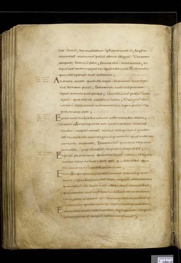 | Keywords: MCC-61050 Evangeliarium (Lebuïnuscodex) (205).jpg Artwork nl Anonymous Noordoost-Frankrijk Anonymous Rijnland Anonymous Maasland nl De kern van de boekband van de Lebuïnuscodex wordt gevormd door twee eikenhouten platten De rug en het achterplat zijn overtrokken met zeemleer Het voorplat is rijkelijk versierd met verguld zilversmeedwerk reliëfs van walrustand en verscheidene stenen De compositie van de bekleding van het voorplat wordt bepaald door een verguld zilveren filigraankruis Aan de uiteinden van de kruisarmen bevinden zich vierpassen met overhoeks vierkant eveneens met filigraan gedecoreerd Hiervan zijn er slechts twee bewaard gebleven en wel die aan de verticale kruisarmen Zij bevatten tevens nog de oorspronkelijke versiering bestaande uit een filigraanmedaillon met een pseudo-camee van respectievelijk een mannen- en een vrouwenhoofd in profiel Het snijpunt van het kruis wordt ingenomen door een ver vooruitstekend Bacchuskopje in chalcedoon te herkennen aan de kleine druiventrosjes in zijn haartooi Het kopje is gevat in een filigraanmedaillon welke op zijn beurt weer is geplaatst op een vierpas van filigraanwerk Op elk van de kruisarmen bevindt zich een ovale steen 'en cabochon' op een medaillon met filigraan Het filigraanwerk van kruis en sierstukken is in de vorm van visblazen In de ruimten tussen de kruisarmen zijn rechthoekige reliëfs van walrustand aangebracht met de vier evangelisten en hun symbool De reliëfs hebben de volgende afmetingen H 10 0 x B 5 5 cm Van links boven naar rechts onder betreft het Mattheus met de engel Johannes met de adelaar Marcus met de gevleugelde leeuw en Lucas met de gevleugelde os De figuren zijn paarsgewijs als elkaars spiegelbeeld ten opzichte van de middenas geplaatst Mattheus en Johannes zitten vrijwel geheel frontaal terwijl Marcus en Lucas meer in profiel zijn afgebeeld Qua opbouw verschillen de vier reliëfs nauwelijks van elkaar Binnen een rand van vierlobbige blaadjes verheffen zich twee zuilen met een basis een kapiteel en een dekplaat Hierop rust een rondboog geflankeerd door twee torens en afgedekt met een fronton dat boven Mattheus en Johannes boogvormig en boven Marcus en Lucas driehoekig is Onder deze overhuiving zitten de evangelisten gekleed in een lang gewaad en mantel met gekruiste benen aan een lessenaar hun blote voeten rustend op een bankje Allen zijn baardeloos en voorzien van een nimbus Voorts houden ze een pen in hun rechterhand terwijl hun linker op een boek ligt of gebarend is opgeheven Boven elk van de evangelisten verschijnt in de opening van het fronton zijn symbool met een spreukband Dit rijkelijk gedecoreerde middenveld wordt omlijst door sierbanden van verguld koper De opbouw van de sierlijsten is steeds dezelfde een opstaande smalle band die op regelmatige afstanden is voorzien van holten met aan weerszijden een brede strook voorzien van een gestanst motief Aan de lange zijden van de boekband bestaat het motief uit palmetten aan de korte zijden uit rozetten Van deze laatstgenoemde stroken ontbreekt steeds de buitenste rand Bij alle stroken met palmettenmotief wijzen de palmetten naar links met uitzondering van de buitenste strook rechtsboven die het motief in tegengestelde richting toont Verguld zilveren rozetten op de hoeken van het voorplat omgeven door een smalle rand van filigraanwerk met cirkelmotief en bekroond met een 'en cabochon' gezette steen completeren het geheel Van de rozet links onder ontbreekt de steen en is slechts de buitenste rand over Aan de voorzijde van de boekband bevinden zich nog de rudimenten van twee sluitingen between u'825' u'1000' u'1150' u'850' u'1199' u'1199' nl perkament eikenhout zilver goud koper walrustand chalcedoon glas leer Size 35 5 26 0 cm nl Hoogte 35 5cm Breedte 26 0cm Diepte 13 5cm Institution Museum Catharijneconvent object history exhibition history credit line nl Foto Museum Catharijneconvent Utrecht foto HetFotoAtelier Peter Rothengatter accession number Object number 61050 Inventory number ABM h1 place of creation https //www catharijneconvent nl/adlib/61050/ View this work on the website of Museum Catharijneconvent Museum Catharijneconvent Cc-zero <gallery> File MCC-61050_Evangeliarium_Lebuïnuscodex_ 11 jpg File MCC-61050_Evangeliarium_Lebuïnuscodex_ 172 jpg File MCC-61050_Evangeliarium_Lebuïnuscodex_ 212 jpg File MCC-61050_Evangeliarium_Lebuïnuscodex_ 61 jpg File MCC-61050_Evangeliarium_Lebuïnuscodex_ 12 jpg File MCC-61050_Evangeliarium_Lebuïnuscodex_ 213 jpg File MCC-61050_Evangeliarium_Lebuïnuscodex_ 56 jpg File MCC-61050_Evangeliarium_Lebuïnuscodex_ 232 jpg File MCC-61050_Evangeliarium_Lebuïnuscodex_ 93 jpg File MCC-61050_Evangeliarium_Lebuïnuscodex_ 99 jpg File MCC-61050_Evangeliarium_Lebuïnuscodex_ 184 jpg File MCC-61050_Evangeliarium_Lebuïnuscodex_ 64 jpg File MCC-61050_Evangeliarium_Lebuïnuscodex_ 299 jpg File MCC-61050_Evangeliarium_Lebuïnuscodex_ 86 jpg File MCC-61050_Evangeliarium_Lebuïnuscodex_ 260 jpg File MCC-61050_Evangeliarium_Lebuïnuscodex_ 159 jpg File MCC-61050_Evangeliarium_Lebuïnuscodex_ 247 jpg File MCC-61050_Evangeliarium_Lebuïnuscodex_ 180 jpg File MCC-61050_Evangeliarium_Lebuïnuscodex_ 121 jpg File MCC-61050_Evangeliarium_Lebuïnuscodex_ 315 jpg File MCC-61050_Evangeliarium_Lebuïnuscodex_ 284 jpg File MCC-61050_Evangeliarium_Lebuïnuscodex_ 33 jpg File MCC-61050_Evangeliarium_Lebuïnuscodex_ 44 jpg File MCC-61050_Evangeliarium_Lebuïnuscodex_ 258 jpg File MCC-61050_Evangeliarium_Lebuïnuscodex_ 237 jpg File MCC-61050_Evangeliarium_Lebuïnuscodex_ 20 jpg File MCC-61050_Evangeliarium_Lebuïnuscodex_ 220 jpg File MCC-61050_Evangeliarium_Lebuïnuscodex_ 279 jpg File MCC-61050_Evangeliarium_Lebuïnuscodex_ 183 jpg File MCC-61050_Evangeliarium_Lebuïnuscodex_ 60 jpg File MCC-61050_Evangeliarium_Lebuïnuscodex_ 166 jpg File MCC-61050_Evangeliarium_Lebuïnuscodex_ 97 jpg File MCC-61050_Evangeliarium_Lebuïnuscodex_ 71 jpg File MCC-61050_Evangeliarium_Lebuïnuscodex_ 132 jpg File MCC-61050_Evangeliarium_Lebuïn