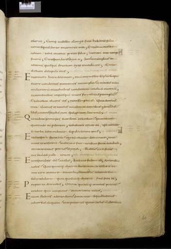 | Keywords: MCC-61050 Evangeliarium (Lebuïnuscodex) (123).jpg Artwork nl Anonymous Noordoost-Frankrijk Anonymous Rijnland Anonymous Maasland nl De kern van de boekband van de Lebuïnuscodex wordt gevormd door twee eikenhouten platten De rug en het achterplat zijn overtrokken met zeemleer Het voorplat is rijkelijk versierd met verguld zilversmeedwerk reliëfs van walrustand en verscheidene stenen De compositie van de bekleding van het voorplat wordt bepaald door een verguld zilveren filigraankruis Aan de uiteinden van de kruisarmen bevinden zich vierpassen met overhoeks vierkant eveneens met filigraan gedecoreerd Hiervan zijn er slechts twee bewaard gebleven en wel die aan de verticale kruisarmen Zij bevatten tevens nog de oorspronkelijke versiering bestaande uit een filigraanmedaillon met een pseudo-camee van respectievelijk een mannen- en een vrouwenhoofd in profiel Het snijpunt van het kruis wordt ingenomen door een ver vooruitstekend Bacchuskopje in chalcedoon te herkennen aan de kleine druiventrosjes in zijn haartooi Het kopje is gevat in een filigraanmedaillon welke op zijn beurt weer is geplaatst op een vierpas van filigraanwerk Op elk van de kruisarmen bevindt zich een ovale steen 'en cabochon' op een medaillon met filigraan Het filigraanwerk van kruis en sierstukken is in de vorm van visblazen In de ruimten tussen de kruisarmen zijn rechthoekige reliëfs van walrustand aangebracht met de vier evangelisten en hun symbool De reliëfs hebben de volgende afmetingen H 10 0 x B 5 5 cm Van links boven naar rechts onder betreft het Mattheus met de engel Johannes met de adelaar Marcus met de gevleugelde leeuw en Lucas met de gevleugelde os De figuren zijn paarsgewijs als elkaars spiegelbeeld ten opzichte van de middenas geplaatst Mattheus en Johannes zitten vrijwel geheel frontaal terwijl Marcus en Lucas meer in profiel zijn afgebeeld Qua opbouw verschillen de vier reliëfs nauwelijks van elkaar Binnen een rand van vierlobbige blaadjes verheffen zich twee zuilen met een basis een kapiteel en een dekplaat Hierop rust een rondboog geflankeerd door twee torens en afgedekt met een fronton dat boven Mattheus en Johannes boogvormig en boven Marcus en Lucas driehoekig is Onder deze overhuiving zitten de evangelisten gekleed in een lang gewaad en mantel met gekruiste benen aan een lessenaar hun blote voeten rustend op een bankje Allen zijn baardeloos en voorzien van een nimbus Voorts houden ze een pen in hun rechterhand terwijl hun linker op een boek ligt of gebarend is opgeheven Boven elk van de evangelisten verschijnt in de opening van het fronton zijn symbool met een spreukband Dit rijkelijk gedecoreerde middenveld wordt omlijst door sierbanden van verguld koper De opbouw van de sierlijsten is steeds dezelfde een opstaande smalle band die op regelmatige afstanden is voorzien van holten met aan weerszijden een brede strook voorzien van een gestanst motief Aan de lange zijden van de boekband bestaat het motief uit palmetten aan de korte zijden uit rozetten Van deze laatstgenoemde stroken ontbreekt steeds de buitenste rand Bij alle stroken met palmettenmotief wijzen de palmetten naar links met uitzondering van de buitenste strook rechtsboven die het motief in tegengestelde richting toont Verguld zilveren rozetten op de hoeken van het voorplat omgeven door een smalle rand van filigraanwerk met cirkelmotief en bekroond met een 'en cabochon' gezette steen completeren het geheel Van de rozet links onder ontbreekt de steen en is slechts de buitenste rand over Aan de voorzijde van de boekband bevinden zich nog de rudimenten van twee sluitingen between u'825' u'1000' u'1150' u'850' u'1199' u'1199' nl perkament eikenhout zilver goud koper walrustand chalcedoon glas leer Size 35 5 26 0 cm nl Hoogte 35 5cm Breedte 26 0cm Diepte 13 5cm Institution Museum Catharijneconvent object history exhibition history credit line nl Foto Museum Catharijneconvent Utrecht foto HetFotoAtelier Peter Rothengatter accession number Object number 61050 Inventory number ABM h1 place of creation https //www catharijneconvent nl/adlib/61050/ View this work on the website of Museum Catharijneconvent Museum Catharijneconvent Cc-zero <gallery> File MCC-61050_Evangeliarium_Lebuïnuscodex_ 11 jpg File MCC-61050_Evangeliarium_Lebuïnuscodex_ 172 jpg File MCC-61050_Evangeliarium_Lebuïnuscodex_ 212 jpg File MCC-61050_Evangeliarium_Lebuïnuscodex_ 61 jpg File MCC-61050_Evangeliarium_Lebuïnuscodex_ 12 jpg File MCC-61050_Evangeliarium_Lebuïnuscodex_ 213 jpg File MCC-61050_Evangeliarium_Lebuïnuscodex_ 56 jpg File MCC-61050_Evangeliarium_Lebuïnuscodex_ 232 jpg File MCC-61050_Evangeliarium_Lebuïnuscodex_ 93 jpg File MCC-61050_Evangeliarium_Lebuïnuscodex_ 99 jpg File MCC-61050_Evangeliarium_Lebuïnuscodex_ 184 jpg File MCC-61050_Evangeliarium_Lebuïnuscodex_ 64 jpg File MCC-61050_Evangeliarium_Lebuïnuscodex_ 299 jpg File MCC-61050_Evangeliarium_Lebuïnuscodex_ 86 jpg File MCC-61050_Evangeliarium_Lebuïnuscodex_ 260 jpg File MCC-61050_Evangeliarium_Lebuïnuscodex_ 159 jpg File MCC-61050_Evangeliarium_Lebuïnuscodex_ 247 jpg File MCC-61050_Evangeliarium_Lebuïnuscodex_ 180 jpg File MCC-61050_Evangeliarium_Lebuïnuscodex_ 121 jpg File MCC-61050_Evangeliarium_Lebuïnuscodex_ 315 jpg File MCC-61050_Evangeliarium_Lebuïnuscodex_ 284 jpg File MCC-61050_Evangeliarium_Lebuïnuscodex_ 33 jpg File MCC-61050_Evangeliarium_Lebuïnuscodex_ 44 jpg File MCC-61050_Evangeliarium_Lebuïnuscodex_ 258 jpg File MCC-61050_Evangeliarium_Lebuïnuscodex_ 237 jpg File MCC-61050_Evangeliarium_Lebuïnuscodex_ 20 jpg File MCC-61050_Evangeliarium_Lebuïnuscodex_ 220 jpg File MCC-61050_Evangeliarium_Lebuïnuscodex_ 279 jpg File MCC-61050_Evangeliarium_Lebuïnuscodex_ 183 jpg File MCC-61050_Evangeliarium_Lebuïnuscodex_ 60 jpg File MCC-61050_Evangeliarium_Lebuïnuscodex_ 166 jpg File MCC-61050_Evangeliarium_Lebuïnuscodex_ 97 jpg File MCC-61050_Evangeliarium_Lebuïnuscodex_ 71 jpg File MCC-61050_Evangeliarium_Lebuïnuscodex_ 132 jpg File MCC-61050_Evangeliarium_Lebuïn