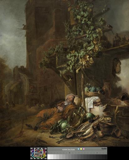 Keywords: MCC-74052 Tobit slapend onder de wingerd (1).tif Artwork Creator Jan Baptist Weenix LangSwitch As in a snapshot the painter Jan Baptist Weenix records exactly the moment in which a bird poops on Tobit's head He just burried a man who was murdered on the street and being unclean as a result of that he has to sleep in a courtyard instead of indoors The bird droppings would eventually lead to Tobit's blindness Als in een snapshot legt Jan Baptist Weenix precies het moment vast waarop een vogel hier een zwaluw poept op het hoofd van Tobit Hij heeft zojuist één van zijn volksgenoten begraven Omdat hij daarna onrein is slaapt Tobit niet in huis maar op de binnenplaats De avond lijkt vredig toch slaat het noodlot toe De poep vormt witte vliezen op Tobits ogen waardoor hij ™s ochtends blind wakker zal worden 1642 Ucfirst Oil on canvas cm 92 5 81 5 Institution Museum Catharijneconvent not on view place of discovery object history ProvenanceEvent 1869 purchase LangSwitch das the le het ~ Boijmans Rotterdam 1204 OK loan LangSwitch das the au het ~ Museum Catharijneconvent Utrecht RMCC s00362 LangSwitch das the le het ~ Boijmans Rotterdam exhibition history credit line nl Object bruikleen Museum Boijmans van Beuningen Rotterdam Foto Museum Boijmans Van Beuningen Rotterdam / foto Studio Tromp Rotterdam Disappeared Disappeared accession number RMCC s00362 place of creation Amsterdam www catharijneconvent nl https //www catharijneconvent nl Home https //www catharijneconvent nl/adlib/74052/ Info Jan Baptist Weenix 002 jpg Version from collectie boijmans nl 74052 Tobit slapend onder de wingerd 1641-1642 1204 OK Jan Baptist Weenix LangSwitch Tobit asleep under a vine is blinded Tobias onder de wingerd slapend 1641-1642 4461 Jan Baptist Weenix Tobias onder de wingerd slapende Tobias 2 10-12 vroeger 1642 gedateerd 2754 heet te Barent Fabritius Tobias onder de wingerd slapende 1636-1663 Q19928830 Museum Catharijneconvent Cc-zero Paintings in the Museum Catharijneconvent Weenix Dutch Golden Age paintings in the Museum Boijmans Van Beuningen Weenix Jan Baptist 1642 Jan Baptist Weenix 1642 |