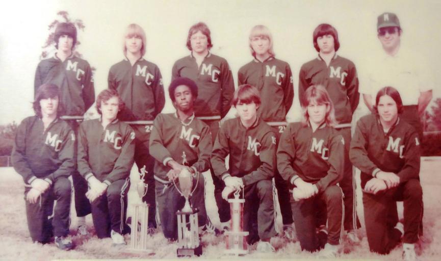 | Keywords: MCHS 1974 AAAA Cross Country State Champions.jpg en Morgan City High School 1974 Class AAAA Cross Country State Champions depicted people Bottom row L-R Mert Blanchard Donald Hensley Patrick Pigg Mike Jones Lennis Scully and Kevin Foret Top row Carl Richard Jerry Jones Mike Fontenot Terry Jones Gerald Barbier and Coach Bob Cox 1974 Personal collection Morgan City High School other versions cc-zero Uploaded with UploadWizard Morgan City High School Louisiana 1974 in Louisiana Cross country running |