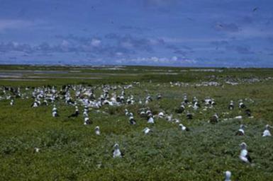 Keywords: McKean BirdColony AKK.jpg Colony of Lesser Frigate Birds Fregata ariel on McKean Island Phoenix Islands Kiribati Original field notes Dominant vegetation is puncture vine Tribulus cistoides an extremely spiny vine which punctures not only bare feet but shoes as well The 3-sided seeds with tough needle-like thorns are adapted to attaching to bird feathers and thus effecting seed dissemination between islands Here we have another wonderful Lesser Frigatebird colony in the 1960's last censuses nos ranged from 30 000-35 000 pairs which makes this the largest colony in the world along with a similar colony on nearby Phoenix Island 16 000-45 000 prs http //www pbif org/WebGallery/Default aspx directory 2204 action View storedaction SearchFiles sortorder Ascending dirsortorder Ascending file 1418 page 38 search McKean not specified Cameron B Kepler see http //www pbif org/images/default html Cameron B Kepler McKean Island Fregata ariel Tribulus cistoides |