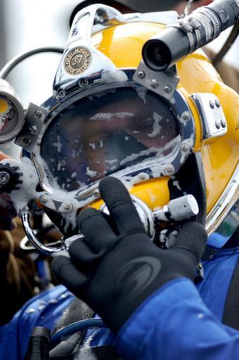 Keywords: MDSU 2 aboard USNS Grasp 110721-N-EF447-130.jpg en Chief Petty Officer Bryan Williams Navy diver stationed with Mobile Diving and Salvage Unit 2 adjusts his helmet aboard the Military Sealift Command rescue and salvage ship USNS Grasp Grasp MDSU-2 and Navy archeologist scientist and historians are currently deployed to the North Sea to conduct diving expeditions Photo by Petty Officer 1st Class Ja'lon A Rhinehart 2011-07-21 Petty Officer 2nd Class Ja'Lon Rhinehart https //www dvidshub net/image/432947 110721-N-EF447-130 2011-07-25 02 49 NORTH SEA USAFRICOM AT SEA PD-USGov-Military-Navy United States Navy Mobile Diving and Salvage Unit Two Images from DoD uploaded by Fæ Diving helmets |