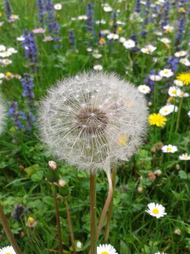 Keywords: meadow flowers blossom bloom grass summer flower meadow spring bloom plant white dandelion green nature purple blades of grass close