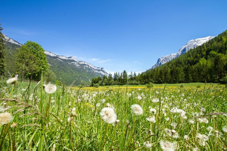Keywords: meadow grass idyll dandelion relax landscape green mountains steinplatte stone mountains forest loferer steinberge waidring lofer