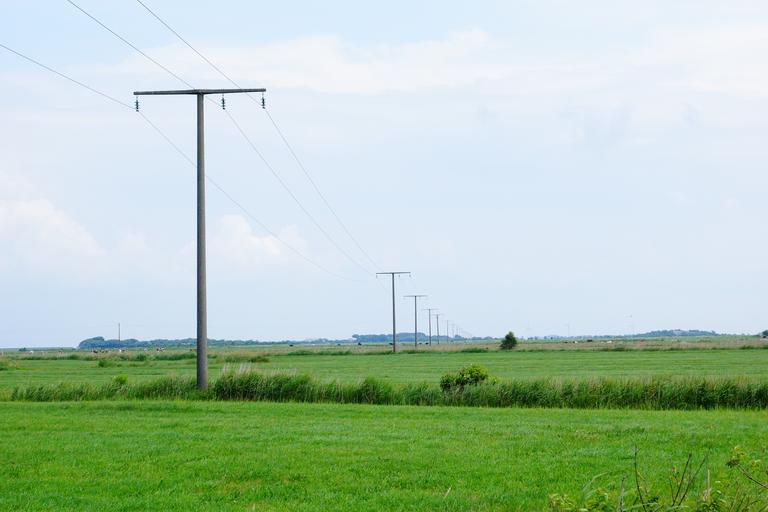 Keywords: meadow green horizon power poles power line electricity