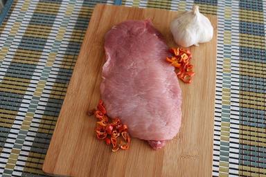 Keywords: meat steak meat pork schnitzel raw garlic spice