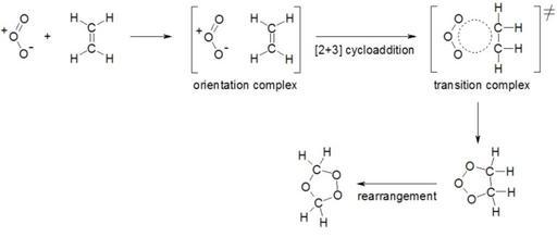 Keywords: Mechanism ozone ethene reaction.jpg en The mechanism of ozone-ethene reaction pl Mechanizm reakcji ozonu z etenem own Zwitterion 2009-01-06 Organic reactions