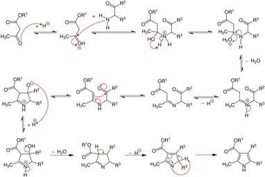 | Keywords: Mechanismus Knorr-Pyrrol-Synthese V1 bearbeitet.svg  en Knorr-Pyrrol-Synthesis 2014-07-03 23 24 36 Abgeändert von https //commons wikimedia org/wiki/File Mechanismus_Knorr-Pyrrol-Synthese_V1 svg ursprünglich Eva1900 PD-chem cc-zero Uploaded with UploadWizard Chemical reactions |