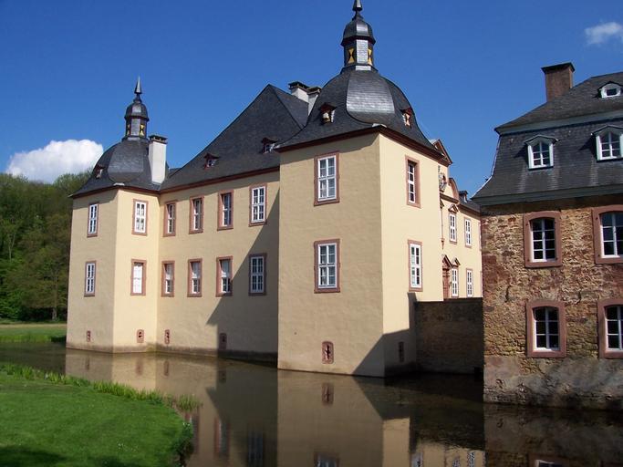 Keywords: mechernich germany castle structure sky clouds house home mansion architecture landmark destinations nature outside country countryside summer spring water pond reflections grass moat