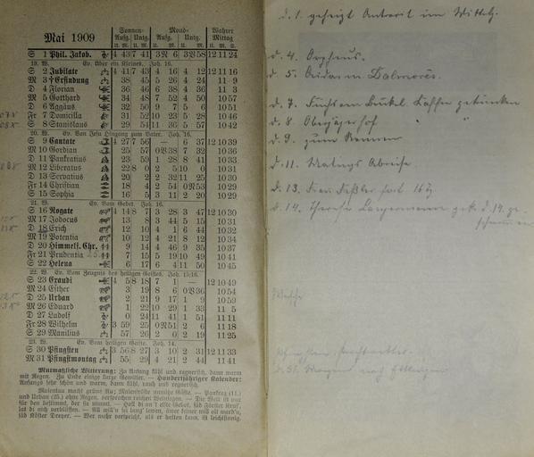 | Keywords: Mecklenburgischer Kalender 1909 011.jpg Großherzoglich Mecklenburg-Schwerinscher und Mecklenburg Strelitzscher Kalender für 1909 Hinstorff'sche Verlagsanstalt Wismar own photo of item in own collection 1909 anonymous PD-old-100 Mecklenburgischer Kalender 1909 Photos by User AndreasPraefcke |
