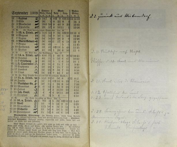 | Keywords: Mecklenburgischer Kalender 1909 019.jpg Großherzoglich Mecklenburg-Schwerinscher und Mecklenburg Strelitzscher Kalender für 1909 Hinstorff'sche Verlagsanstalt Wismar own photo of item in own collection 1909 anonymous PD-old-100 Mecklenburgischer Kalender 1909 Photos by User AndreasPraefcke |