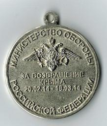 | Keywords: Medal For the Return of Crimea revers.png ru едаль «За возв ащение К ыма» еве с en Medal «For the return of the Crimea» revers 2015-07-03 own User Draa_kul scan ; Ministry of Defence Russia other versions Custom license marker 2015 07 06 PD-RU-exempt orders decorations and medals CC-zero Medal For the Return of Crimea Uploaded with UploadWizard |