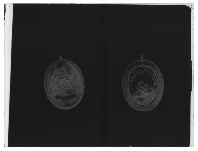 | Keywords: Medaljong - Livrustkammaren - 36554-negative.tif LSH artwork sv Oval medaljong täckt på framsidan av fasettslipat glas i slät fattning därunder matt av cendréfärgat hår över vilket är fäst krönt spegelmonogram av guld V E omgivet av grönemaljerad palmbladskrans nertill vitemaljerat textband med svart text Makalös <br/>Baksidan täckt med polykrom emaljmålning fyrbladig grön växt rosabrunt moln upptill vitt band med svart text Dulce Meum Terra Tegitur nedanför bandet syns delvis en strålande sol Svagt fyrpassformig ram av guld med graverade detaljer längs kanten en dubbel repstav av guld Vid överkanten en ring av guld <br/> Tidigare trodde man att medaljongen var ifrån 1720-talet men senare efterforskningar tyder på att denna sannolikt är tillverkad 1741 i samband med Ulrika Eleonora d y död Texten Dulce meum terra tegitur Jorden täcker min söta kan härledas till Mary Queen of Scots 1542-1587 Hon myntade devisen då hennes första make Francis II av Frankrike 1544-1560 dog Hon kopplade också devisen till lakritsplantan där bladen ovan jord är bittra men plantans rot som göms i jorden är söt Möjligen är det en lakritsplanta som syns på frånsidan av Ulrika Eleonoras medaljong <br/>lefi 2015-08-12 original caption 1741-tal gold - glass - enamel Färg polykrom material emalj - glass g 11 size mm 22 30 8 LRK Ulrika Eleonora av Sverige Spelet om Skåne 1993 Drottning i fiendeland 1995 Det Glittrar prel till 30 aug 2015 2014-2015 Livrustkammaren place of origin original filename LN_E01860 37632 inventory number LRK 1057 36554 CC0 Medaljong - Livrustkammaren - 36554 tif <gallery caption Different images of same object > File Baksida av medaljong med texten Dulce Meum Terra Tegitur - Livrustkammaren - 97853 tif File Medaljong med cendréfärgat hår över vilket är fäst krönt spegelmonogram av guld U E - Livrustkammaren - 97852 tif </gallery> |
