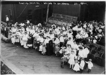 | Keywords: Medicine and hospitals - floating hospital - LOC - cph.3b19385.jpg en Title Medicine and hospitals - floating hospital - waiting to go aboard N Y C Date Created/Published between 1909 and 1916 Medium 1 photographic print Reproduction Number LC-USZ62-72012 b w film copy neg Rights Advisory No known restrictions on publication Call Number LOT 10896 item P P Repository Library of Congress Prints and Photographs Division Washington D C 20540 USA Notes No 851-1 Title and other information transcribed from unverified old caption card data and item George Grantham Bain Collection Library of Congress Caption card tracings Geogr ; Children; Hospitals Collections Bain Collection Bookmark This Record http //www loc gov/pictures/item/2003663656/ 1909 1916 LOC-image cph 3b19385 <br>http //www loc gov/pictures/item/2003663656/ Bain Collection PD-US PD-Bain Uploaded with UploadWizard Hospital ships of the United States Ships in New York City Floating Hospital Hospitals in New York City |