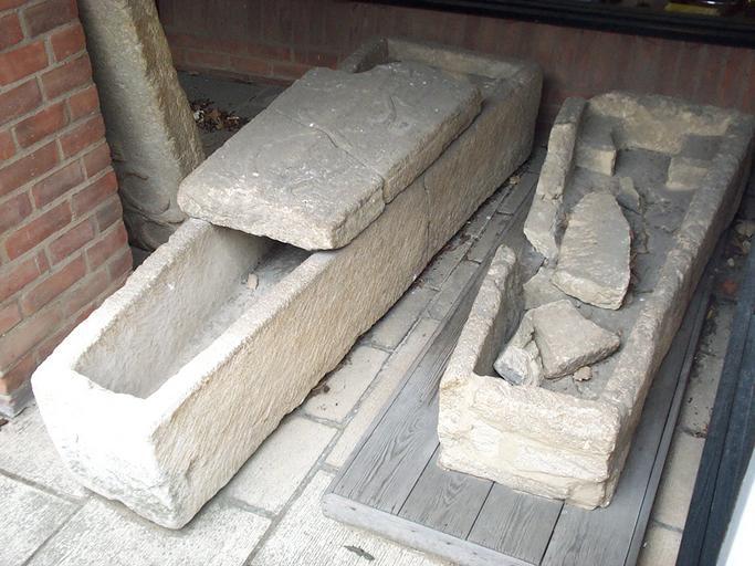 Keywords: MedievalStoneCoffinsBedfordMuseum.JPG 2 medieval stone coffins in the courtyard of Bedford Museum Own 2008-02-23 Simon Speed 52 8 10 09 N 0 27 50 55 W region GB_heading NW Photos by Simon Speed Sarcophagi in England Bedford Museum Bedford
