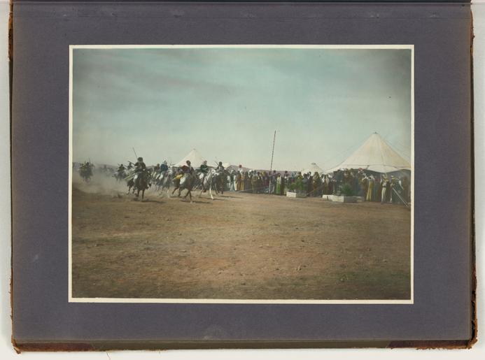 | Keywords: Meetings of British, Arab, and Bedouin officials in Amman, Jordan, April 1921 - File 22.tif en Photographs show meetings between Arab Bedouin and British officials around April 17-27 1921 at Amir Abdullah ibn Hussein's camp at Amman Jordan During these meetings British High Commissioner Herbert Samuel proclaimed Amir Abdullah as the ruler of Transjordan under British protection Among the persons depicted are Amir Abdullah John D Whiting possibly Sheik Sultan of the Belka Sultan ibn 'Ali id Diab ul 'Adwan Amir Shaker bin Zeid future Regent of Transjordan Bedouin chief Auda Abu Tayi Sheik Majid Pasha el Adwan Herbert Samuel British civil administrator Wyndham Deedes British diplomat Albert Abramson T E Lawrence Lawrence of Arabia and possibly Iraq civil administrator Gertrude Bell Also shown are horse racing an airplane landing at Abdullah's camp Circassian leaders Abudullah's bodyguard on camels and Herbert Samuel reading his proclamation of Abdullah as leader of Transjordan Reproduction Number LC-DIG-ppmsca-15304 digital files of original photos LC-DIG-ppmsca-15305 digital files of album pages Rights Advisory No known restrictions on publication Access Advisory For reference access please use the digital images in the online catalog to preserve the fragile original items Notes Photographs were created by the photographers of the American Colony Photo Department located in Jerusalem Founded in the late 1890s by Elijah Meyers the photo agency was headed during its heyday ca 1903-1933 by Lewis Larsson whose staff photographers included Erik Lind Lars Lind Furman Baldwin and G Eric Matson It transitioned into the Matson Photo Service around 1940 with photography by Matson Hanna Safieh Joseph H Giries and others John D Whiting contributed periodically to the work of both agencies The images in this album were probably taken by Lewis Larsson and/or Eric Matson For more information see http //hdl loc gov/loc pnp/pp matpc and http //www loc gov/rr/print/coll/629_whiting html Some caption information for these photographs based on information from matching negatives in the G Eric and Edith Matson Photograph Collection LC-M32-1942 LC-M32-1952 LC-M32-1951 LC-M32-1954 LC-M32-1956 M32-1957 and LC-M32-50280-x Album unpaginated album page numbers supplied by Library staff Pages 1-2 and verso of each page are blank One unattached photograph was found with the album and is stored with it Photograph is a portrait of a Jordanian man in traditional dress Blind stamp Hagop Berberian Amman Stamped on verso Copyright reserved By appointment to H M the King photographers Hagop Berberian Son More information about the events and people depicted in the album are available in the John D Whiting Supplementary Archive Box 1 LOT title devised by Library staff John D Whiting's diaries correspondence and other materials are located in the Library of Congress Manuscript Division Papers of John D Whiting Forms part of Visual materials from the papers of John D Whiting Library of Congress Transfer; Manuscript Division; 2006; DLC/PP-2006 051 29 Subjects Samuel Herbert Louis Samuel --Viscount --1870-1963 Lawrence T E -- Thomas Edward --1888-1935 Abdullah --King of Jordan --1882-1951 Deedes Wyndham Henry --Sir --1883-1956 Shākir ibn Zayd --Prince son of Zayd ibn Fawwāz Amir of Ṭāʾif --1885-1934 Bell Gertrude Lowthian --1868-1926 Jordan--History--1919-1946 American Colony Jerusalem --People--1920-1930 British--Jordan--Amman--1920-1930 Arabs--Jordan--Amman--1920-1930 Bedouins--Jordan--Amman--1920-1930 Circassians--Jordan--Amman--1920-1930 Tribal chiefs--Jordan--Amman--1920-1930 Meetings--Jordan--Amman--1920-1930 Camps--Jordan--Amman--1920-1930 Government officials--Jordan--Amman--1920-1930 Biplanes--Jordan--Amman--1920-1930 Proclamations--Jordan--Amman--1920-1930 April 17-27 1921 http //www loc gov/pictures/item/mpc2010001545/PP/resource/ Whiting John D John David 1882-1951 photographer Larsson Lewis photographer Matson G Eric Gästgifvar Eric 1888-1977 photographer other versions Wikimedia Levant - GLAM PD-Jordan 1921 Herbert Samuel and Amir Abdullah meetings |