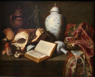Meiffren_Conte_-_Nature_morte_au_vase_de_Chine,_coquillages,_bronzes_antiques,_livres_et_tapis.jpg (1249x1024)