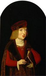 | Keywords: Meister der Magdalenenlegende 003.jpg Meister_der_Magdalenenlegende_003-transparent png Artwork Creator Master of the Legend of Mary Magdalene de Kaiser Karl V 1500-1558 als Siebenjähriger mit einem Jagdfalken Halbfigurenbild ca 1507 oil wood 49 x 35 5 cm Rahmenmaße 49 x 36 5 x 3 cm Institution KHM accession number object history credit line Beschriftung Am Hemdsaum die Inschrift FIS DE ROI SPANNER N ; Inschrift an der unteren Rahmenleiste Etatis septe anor quatour mes XXI dier <br/> Inv -Nr GG_4430<br/> Provenienz Ambraser Slg <br/> Abgebildete Person Kaiser Karl V Sohn des Philipp von Habsburg http //bilddatenbank khm at/viewArtefact id 2296 PD-old-100 DEFAULTSORT 1507c; Charles V Paintings by Meister der Magdalenenlegende in the Kunsthistorisches Museum Portraits of young Charles V Holy Roman Emperor 1500s paintings in Austria 1507 portrait paintings Male 16th-century oil on panel paintings in Austria 16th-century oil portraits of boys at half length 16th-century portrait paintings in the Kunsthistorisches Museum 16th-century portrait paintings with birds Collar of the Order of the Golden Fleece in portrait paintings Fur fashion in 1507 Fur trimmings in art Pageboy haircut Portraits with falcons Portraits with semicircular top Red clothing in art male Red headwear in art |