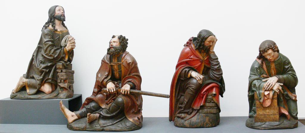| Keywords: Meister von Rabenden Christi Gebet am Ölberg.jpg Meister von Rabenden Christi Gebet am Ölberg mit Aposteln Petrus Jakobus d Ä und Johannes um 1515 Lindenholz alte Fassung Skulpturensammlung Inv 3025; erworben 1906 Bode-Museum Berlin Master of Rabenden Christ on the Mount of Olives with the apostles Peter James the Greater John ; c 1515 limewood old colours Skulpturensammlung inv no 3025; acquired in 1906 Bode-Museum Berlin own own photograph 2007 Creator Meister von Rabenden Photo Andreas Praefcke Gothic sculpture in the Bode-Museum Sculptures of Jesus Christ on the Mount of Olives in Germany Statues of praying men Sleeping people in art Statues of Jesus Statues of Saint Peter in Germany Statues of Saint James the Greater in Germany Statues of Saint John the Evangelist in Germany Meister von Rabenden Photos by User AndreasPraefcke |