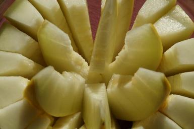 Keywords: melon cantaloupe sliced yellow eat fruit dessert delicious healthy food buffet arranged shell carve