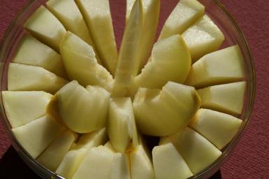 Keywords: melon cantaloupe sliced yellow eat fruit dessert delicious healthy food buffet arranged shell carve