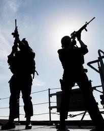 Keywords: Members of the VBSS team assigned to USS Mobile Bay (CG 53), set up a security bubble aboard the Indian Navy Deepak-class fleet oiler INS Shakti (A57) while conducting joint VBSS operations during Exercise Malabar 2016.jpg Quartermaster 3rd Class Kevin Harris left and Fire Controlman 2nd Class Wojclech Gacek members of the visit board search and seizure VBSS team assigned to the guided-missile cruiser USS Mobile Bay CG 53 set up a security bubble aboard the Indian Navy Deepak-class fleet oiler INS Shakti A57 while conducting joint VBSS operations during Exercise Malabar 2016 2016-06-16 http //www navy mil/management/photodb/photos/160616-N-EH218-560 JPG Mass Communication Specialist 2nd Class Ryan J Batchelder PD-USGov-Military-Navy Malabar 2016 INS Shakti A57 Visit Board Search and Seizure |