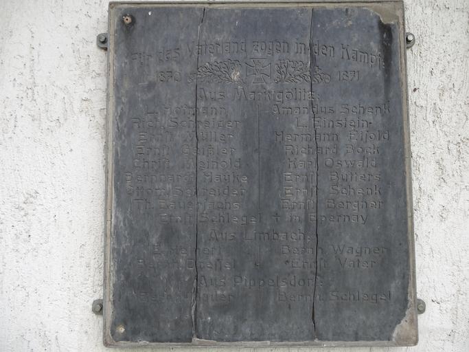 | View Original: | Memorial plaque victims 1870-1871 Marktgölitz.JPG (4896x3672) | |||