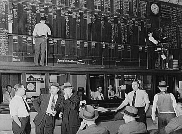 Keywords: Memphis Cotton Exchange.JPG en TITLE Interior of Memphis cotton exchange just before closing Tennessee CALL NUMBER LC-USF34- 052570-D P P LOT 1479 corresponding photographic print Library of Congress Farm Security Administration FSA -Office of War Information OWI Wolcott Marion Post 1910- photographer 1939-11 PD-USGov Memphis Cotton Exchange