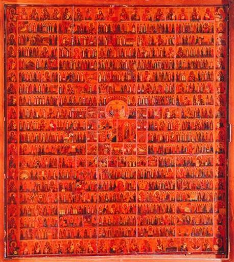 Keywords: Menaion (Athos, Simonpeter, 19 c.).jpg Icon of All Saints Все святые Икона XIX в мон- ь Симонопет а Афон http //www pravenc ru/text/155560 html century 19 anonimus Menaion calendar icons PD-Art
