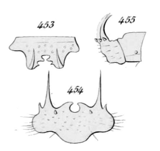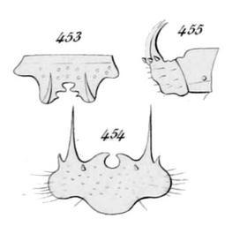 Keywords: Menephilus cylindricus larva detail2.png en abdominal appendices of larva of Menephilus cylindricus from different views<br>Fig 453 upside; Fig 454 from behind Fig 455 from side<br> after Éduard Perris Histoire des insectes du pin maritime Paris 1863 from plate 8 1857 Fig 444 - Fig 457 Éduard Perris Histoire des insectes du pin maritime Perris Plate 8 1857 1857 Menephilus cylindricus PD-old |