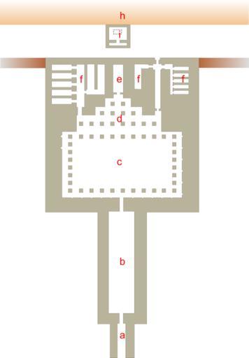 | Keywords: Menkaure mortuary temple verner2.svg en Diagram of Menkaure's mortuary temple at time of Shepseskaf's reign according to Miroslav Verner a - causeway; b - long forechamber; c - courtyard; d - pillared hall; e - sanctuary; f - storerooms; g - antichambre carrée missing ; h - pyramid; i - offering chapel This diagram is not proportional hu Menkauré halotti temploma Sepszeszkaf uralkodása idején Miroslav Verner szerint a - feljáróút; b - hosszú előcsarnok; c - udvar; d - oszlopcsarnok; e - szentély; f - tárolóhelyiségek; g - egyoszlopos terem nincs ; h - piramis; i - áldozókápolna Az ábra nem méretarányos own HoremWeb Mortuary Temple of Menkaura Floor plans of ancient Egyptian temples |
