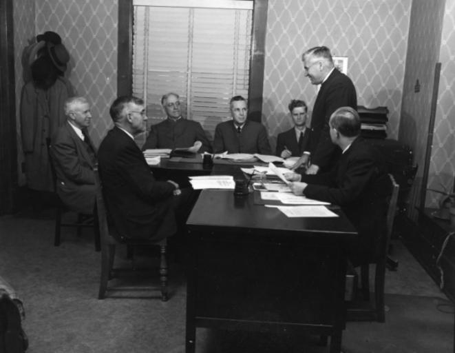 Keywords: mennonite mennonites mennonite mutual aid mennonitemutualaid mma mennonite mutual aid board mennonitemutualaidboard directors guy f. hershberger guyfhershberger orie o. miller orieomiller john l. yoder johnlyoder harry diener harrydiener simon gingerich simongingerich aaron herr-staff aaronherrstaff christian l. graber christianlgraber blackandwhite monochrome indoor black and white Mennonite Mutual Aid Board of Directors. From left to right: John L. Yoder, Harry Diener, Simon Gingerich, Orie O. Miller, Aaron Herr-Staff, Christian L. Graber, and Guy F. Hershberger. Citation: Christian L. and Mina Roth Graber, Papers, 1813-1973. HM1-209 Box 11 Folder 18. Mennonite Church USA Archives - Goshen. Goshen, Indiana. Mennonite Mutual Aid Board of Directors. From left to right: John L. Yoder, Harry Diener, Simon Gingerich, Orie O. Miller, Aaron Herr-Staff, Christian L. Graber, and Guy F. Hershberger. Citation: Christian L. and Mina Roth Graber, Papers, 1813-1973. HM1-209 Box 11 Folder 18. Mennonite Church USA Archives - Goshen. Goshen, Indiana. |