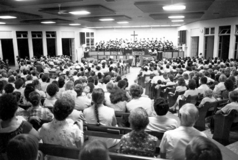 Keywords: mwc mennonite world conference mennoniteworldconference general council meeting generalcouncilmeeting blackandwhite monochrome auditorium room crowd people indoor hall black and white An overflow of about 1,300 attended a special Paraguay music program during General Council sessions. Citation: Mennonite World Conference Records, 1923-2012. X-009. Mennonite Church USA Archives - Goshen. Goshen, Indiana. Box 21, Folder 2. An overflow of about 1,300 attended a special Paraguay music program during General Council sessions. Citation: Mennonite World Conference Records, 1923-2012. X-009. Mennonite Church USA Archives - Goshen. Goshen, Indiana. Box 21, Folder 2.
