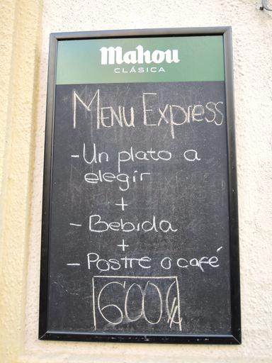 Keywords: Menu Express 6 euros.JPG es Un menú en la calle Colón de Valencia 2015-12-18 13 50 37 own Mr Ricochet other versions cc-zero Carrer de Colom València Mahou Food menus in Spain Restaurants and cafes in Valencia Food menus in Spanish Blackboards in Spain Blackboards in the Land of Valencia |