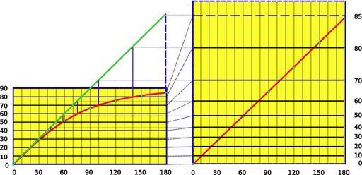 | Keywords: Mercator and straightened rhumb.svg en A rhumb line at 45 degrees to meridians is transferred from sphere to the the plane chart equirectangular projection The parallels are adjusted upwards to give a straight line as for the Mercator projection own Peter Mercator 2010-03-01 Equirectangular projection Mercator projections Loxodrome SVG diagrams Language-neutral diagrams |