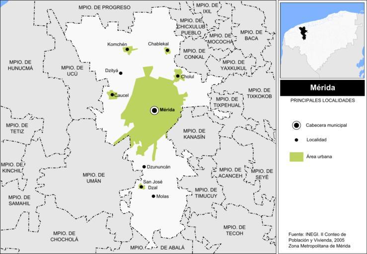 Keywords: Merida localidades.svg Mapa de las principales localidades del municipio de Mérida Yucatán México own Inkscape 2010-01-17 Battroid Maps of Yucatán