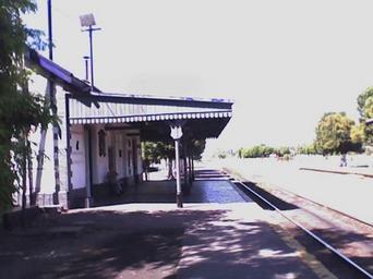 Keywords: Merlo 31.JPG Mariano Acosta railway station city of Mariano Acosta Merlo Partido Buenos Aires Province Argentina Own 2008-01 Tanatos02 34 43 27 2 S 58 47 34 7 W heading SWbS FoP-Argentina Mariano Acosta train station